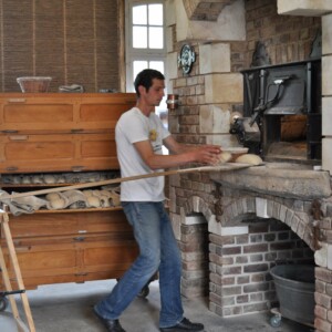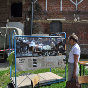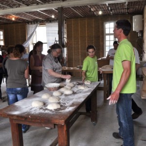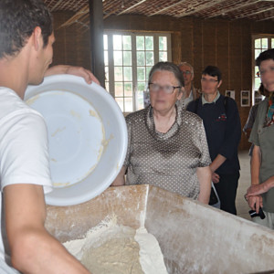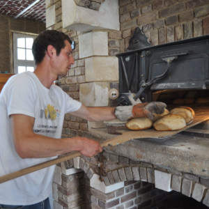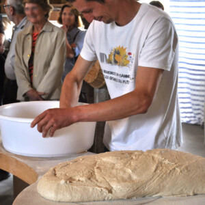 Suivez Edwin pour toutes les étapes de fabrication du pain au levain et les visites de la meunerie ainsi que des parcelles. Autour du fil conducteur du pain, l'exposition du démontage et de la reconstruction du four permet de se rendre compte du travail accompli par Evan, Patrice et Edwin. Vous pourrez voir aussi des petits meuniers en herbe, qui ont tout compris à la mouture et au tamisage. Le réseau des semences paysannes permet d'aller un peu plus loin dans les secrets de fabrication du pain et révèle les blés de pays aux non initiés. Enfin, toute cette agriculture qu'on vous dévoile n'existerait pas sans Terre de Liens, qui projette son film sur le foncier et ses enjeux.